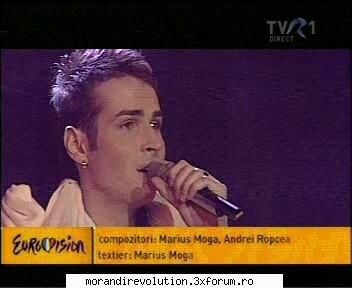 Au fost la VDTV ceva stiri despre Eurovision si au aparut si Morandi. Au si cantat (stateau toti grupati parca erau cu colindul:rotfl si au dat si niste declaratii. In prima faza nu am fost atenta despre ce a vorbit Randi dar reportera respectiva a zis ceva de genul:"Asa e, vezi-ti lungul nasului"...ceva de genul "nu precum Costi care a bagat o replica de genul: "Ati dat atatea mesaje de rev si de craciun...ce mai e acum un sms pt eurovision?" :|. In fine, poate a inregistrat careva. A...si a zis de piesa celor de la Simplu ca ar fi copiata dupa una de la E-type...